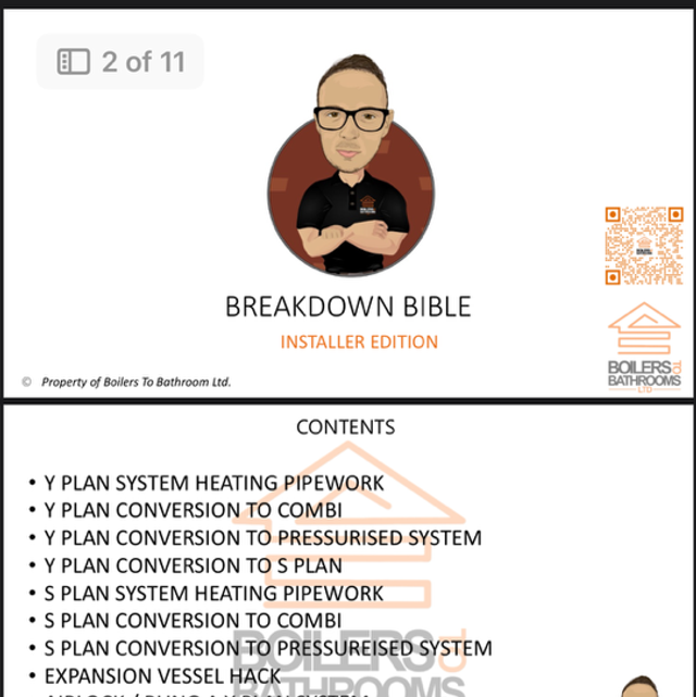 This was developed from experience so Boilers To Bathrooms LTD accepts no responsibility or liability to any loss, damage or injury to anyone or anything from referring to this guide. Work should only be carried out by a qualified and competent person
